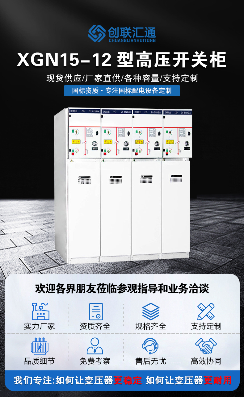 XGN15-12型環網柜由以下4個部分組成: 母線室、主開關、電纜室、操作機構、聯鎖機構和低壓控制。