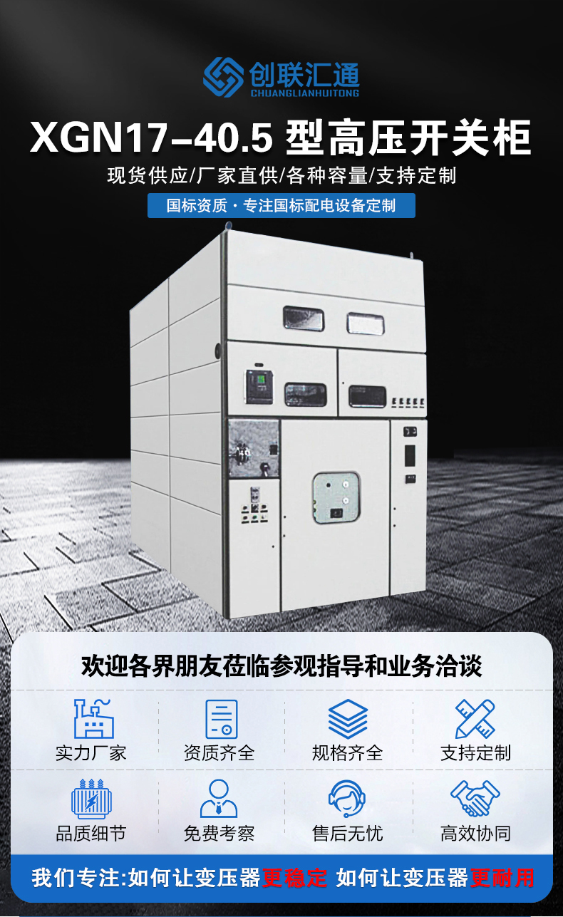 1.XGN17-40.5箱型金屬封閉開關設備系三相交流50Hz單母線及單母線帶旁路系統的戶內成套裝置,作為接受和分配35kV網絡電能之用,并具有對電路進行控制、保護和監測之功能.除廣泛應用于-般電力系統外,還用于具有頻繁操作的電力線路中。