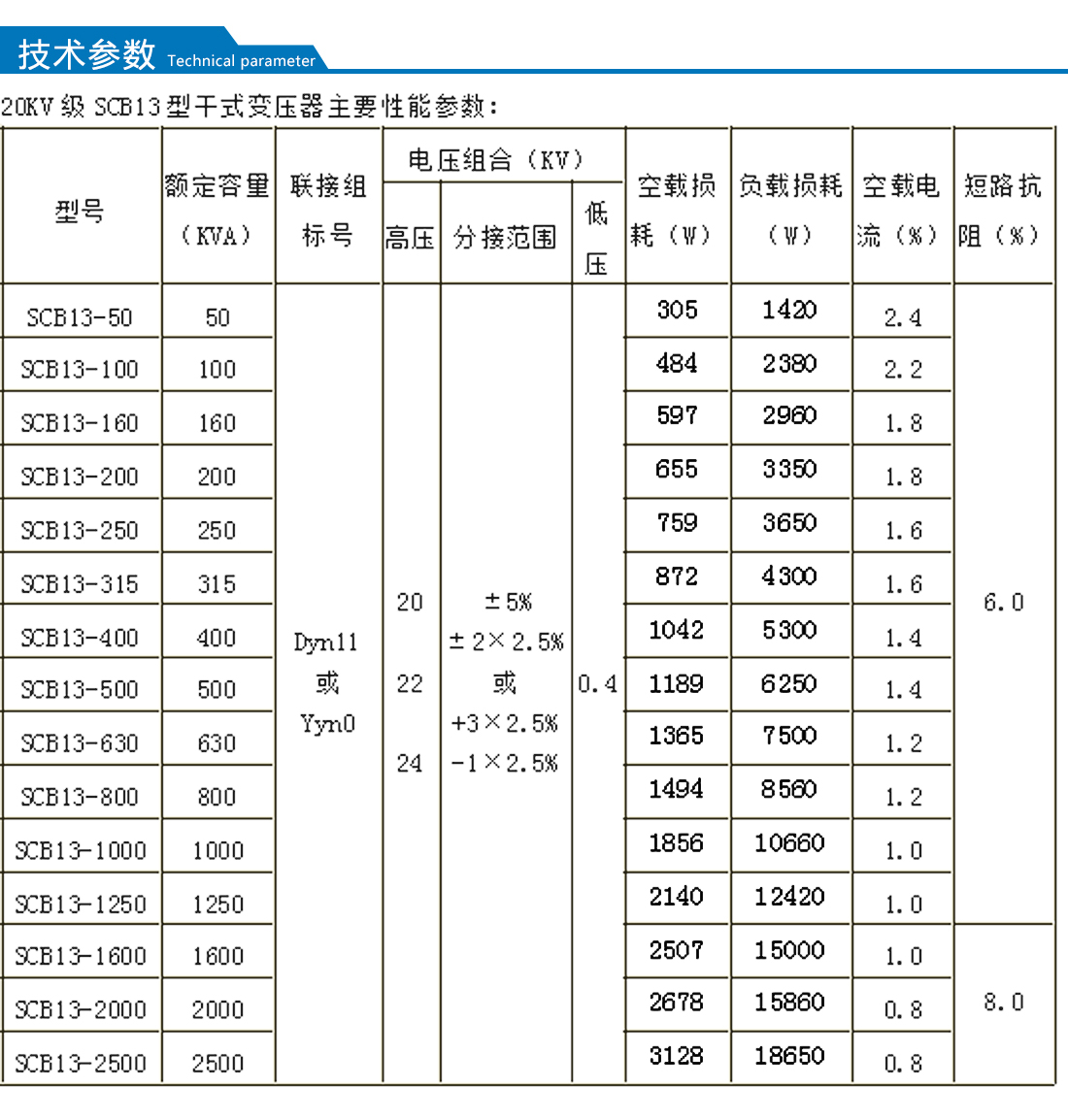 【額定容量】:30-2500kva      【額定電壓】:20kv