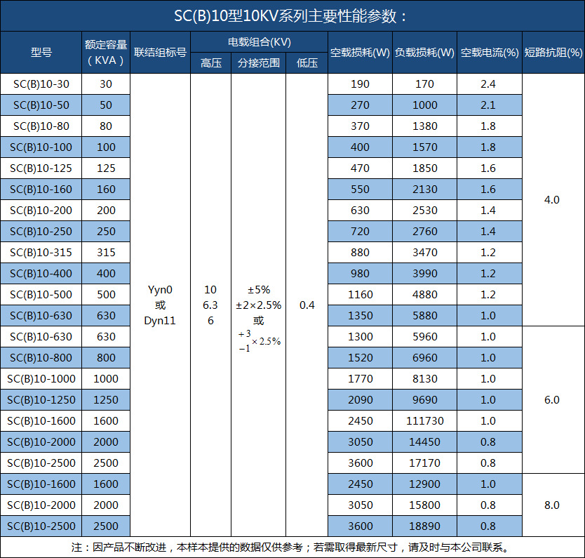 鐵芯:鐵芯選用進口優質冷軋硅鋼片,三階全斜接縫結構,芯柱采用F級無緯帶綁扎,鐵芯表面采用環氧樹脂包封,降低了空載損耗,空載電流和鐵皮噪聲,夾件和緊回件經特殊表面處理,使產品外觀質量有了進一步提高。