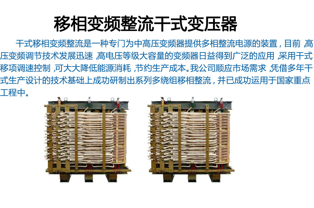移相整流干式變壓器市場近年來呈現(xiàn)出良好的發(fā)展勢頭。由于其能實現(xiàn)大功率高壓電機(jī)的軟起動及改善網(wǎng)側(cè)的電流波形、消除電網(wǎng)諧波污染及提高負(fù)載下功率因數(shù)等諸多獨特效果,在降低能源消耗及用電量方面效果顯著,因此,在電力、冶金、礦山、市政、石油、化工和建材等行業(yè)已成功得到普及應(yīng)用。